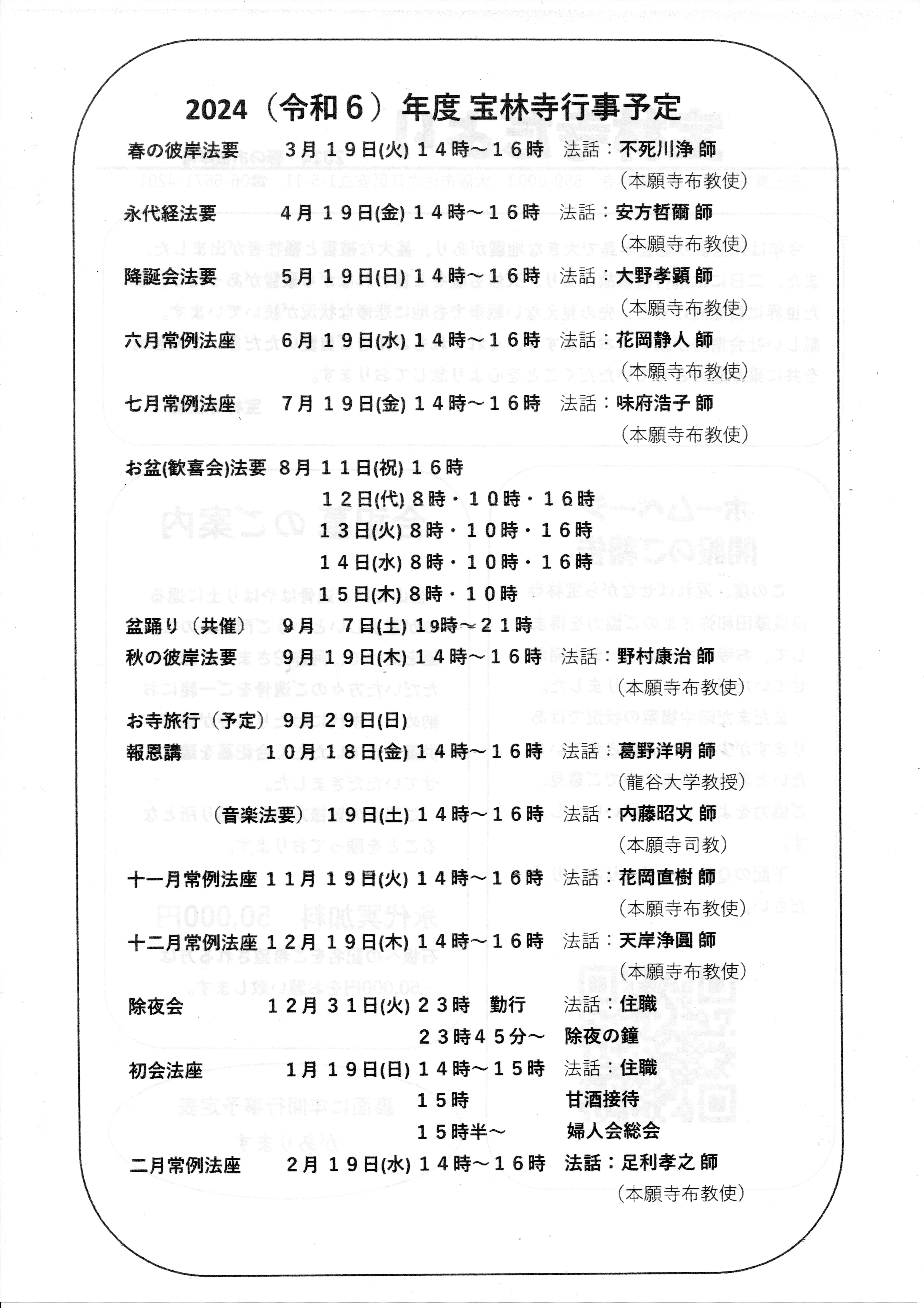 永代経法要 4月19日(日)